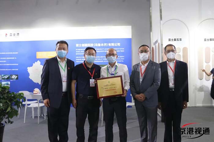 圖為亞士創(chuàng)能榮獲節(jié)能建材科技創(chuàng)新獎(jiǎng)。嘉賓從左至右分別為:新疆建筑材料行業(yè)商會(huì)副會(huì)長(zhǎng)劉洋、中國(guó)建材檢驗(yàn)認(rèn)證集團(tuán)股份有限公司總工程師教授級(jí)高工蔣荃、亞士創(chuàng)能新疆公司經(jīng)理李培彬、中國(guó)綠建進(jìn)出口產(chǎn)業(yè)聯(lián)盟理事長(zhǎng)郭朝連、清華大學(xué)建筑設(shè)計(jì)研究院張以超。